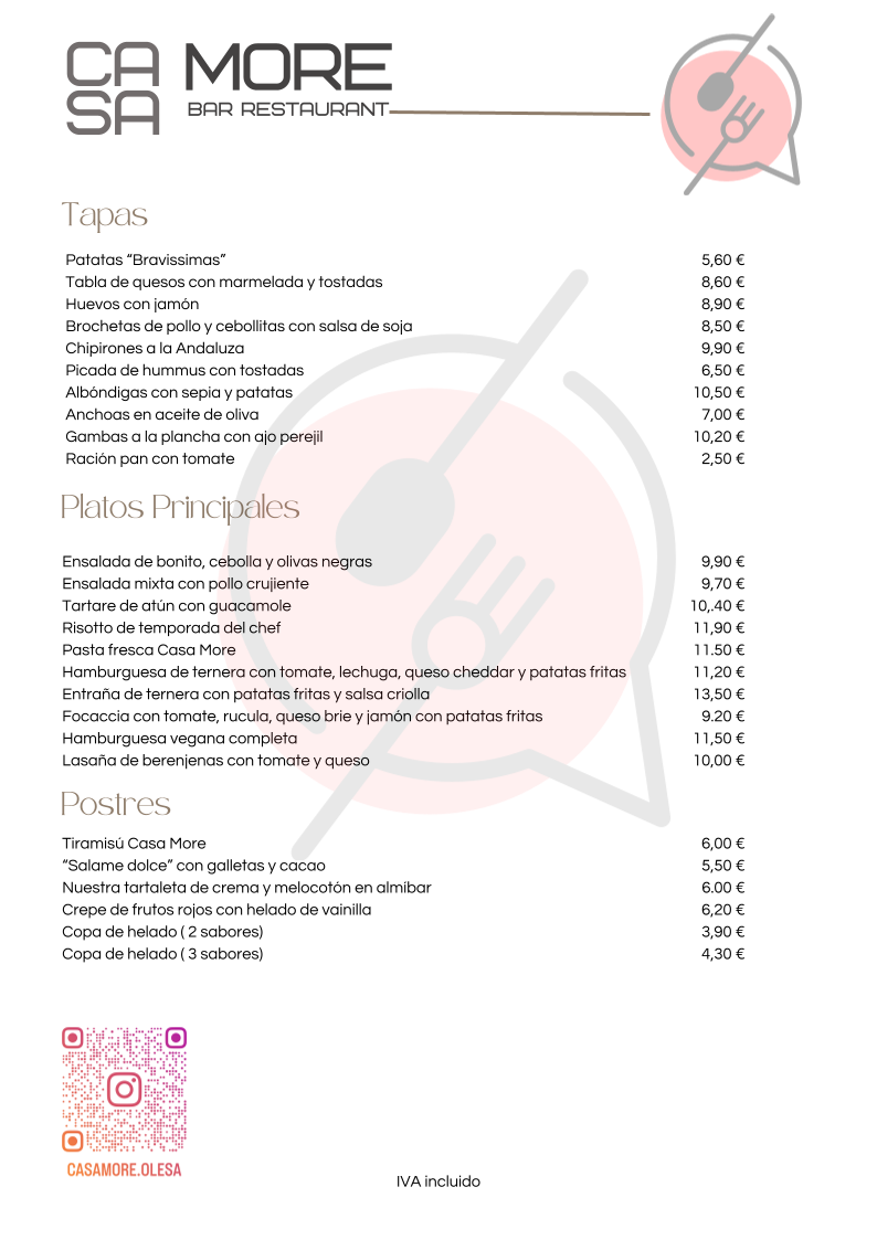 Welcome to RESTAURANTE CASA MORE, located in the charming Olesa de Montserrat. This inviting eatery on Carrer d'Amadeu Paltor offers a blend of traditional flavors and modern culinary techniques. Diners rave about the generous portions and high-quality dishes, from crispy patatas bravas and savory croquettes to the delightful chicken Milanese and tender squid. Each meal is crafted with care, reflecting the owner's passion for authentic cuisine.